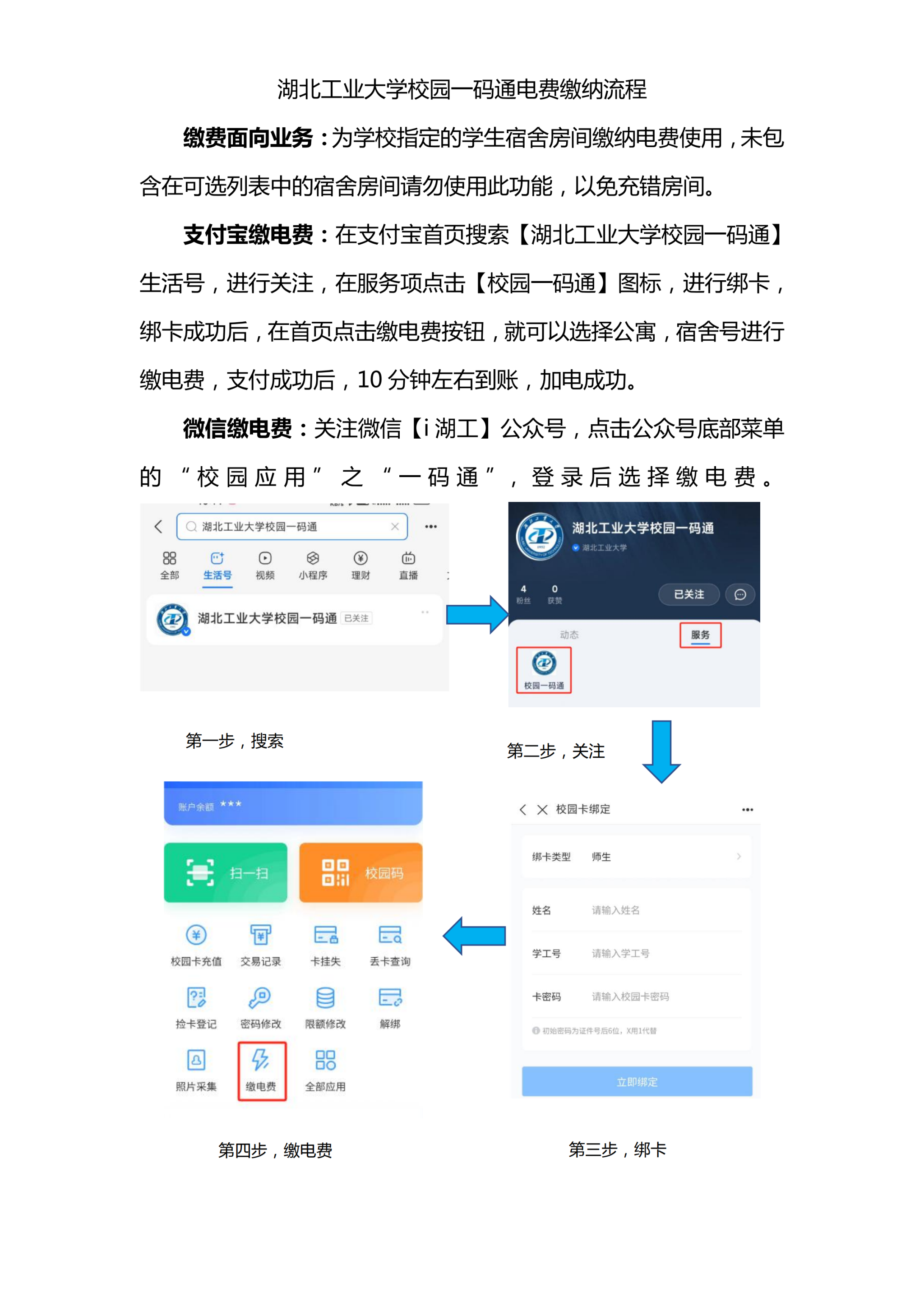 3、自助服务:通过“i湖工”公众号-->校园应用-->一码通-->用户帮助,进行在线咨询和故障报修。